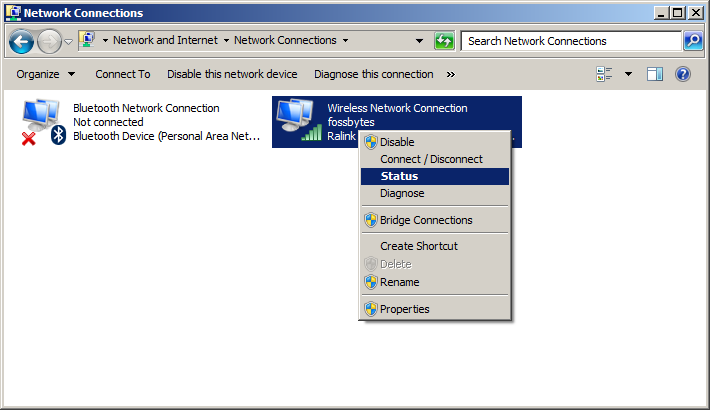 - Now right click on the WiFi network and select status on the drop-down menu.